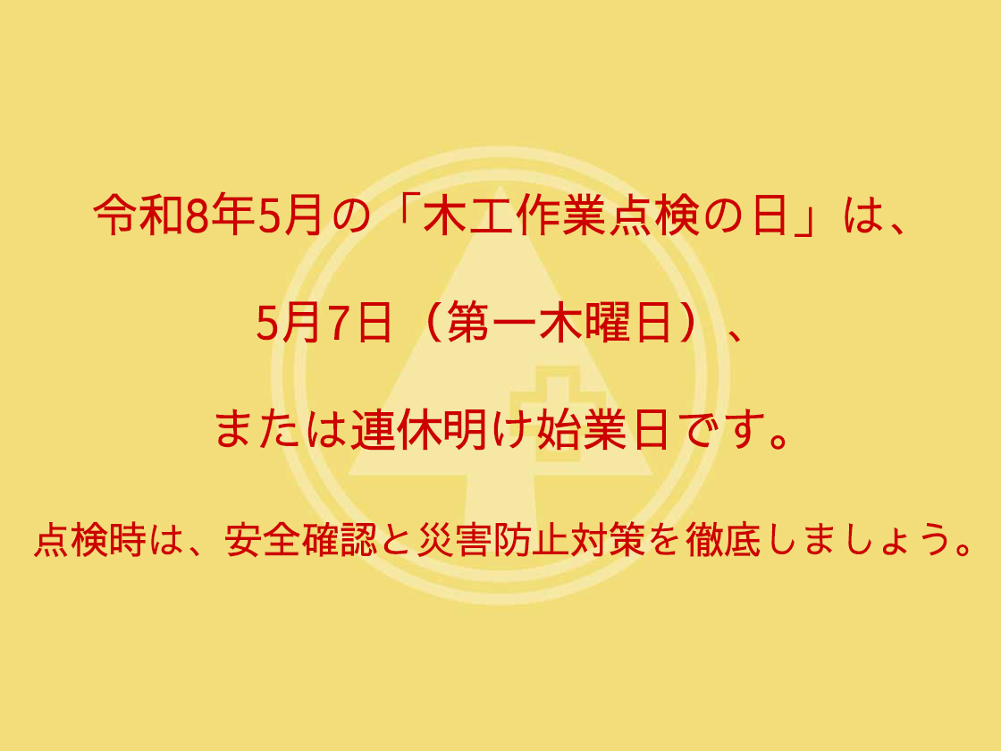 令和8年4月の「木工作業点検の日」は、4月2日(第一木曜日)です。